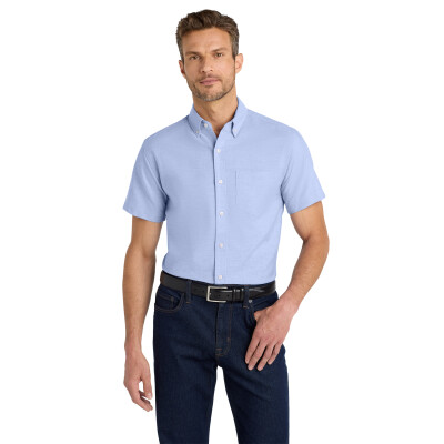 Look your best in a tried-and-true oxford that performs. Designed to release stains, our wrinkle-resistant SuperPro Oxford has a soft hand to keep you looking neat and professional all day long.